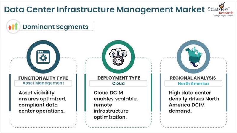- The data center infrastructure management market is segmented by functionality type into performance optimization, asset management, configuration, operational monitoring, reporting & dashboards, and other functionalities.