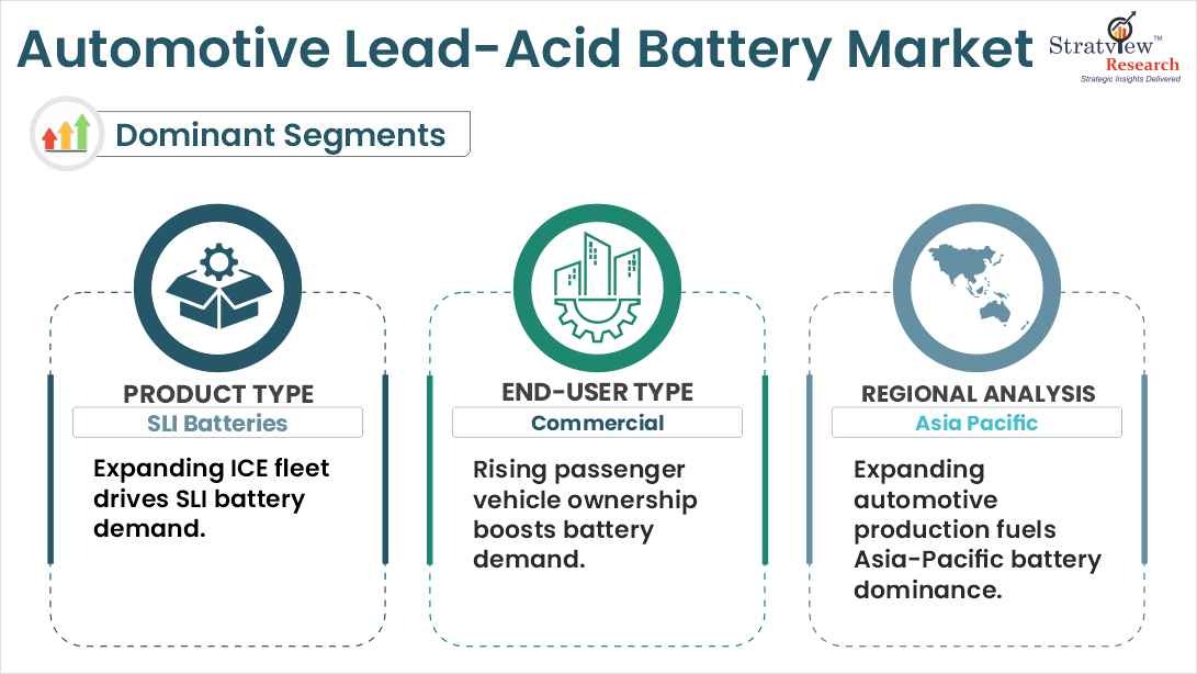 - SLI batteries segment is projected to grow at the highest rate during the forecast period. The SLI (start, lighting, and ignition) batteries segment dominates the automotive lead-acid battery market because they are the primary source of power for starting the internal combustion engines of conventional vehicles.