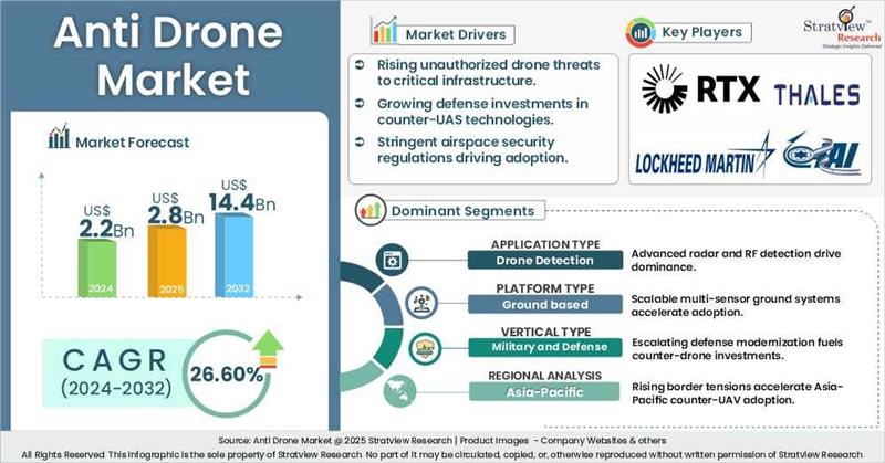 - This strategic assessment report from Stratview Research provides a comprehensive analysis that reflects today’s anti drone market realities and future market possibilities for the forecast period.