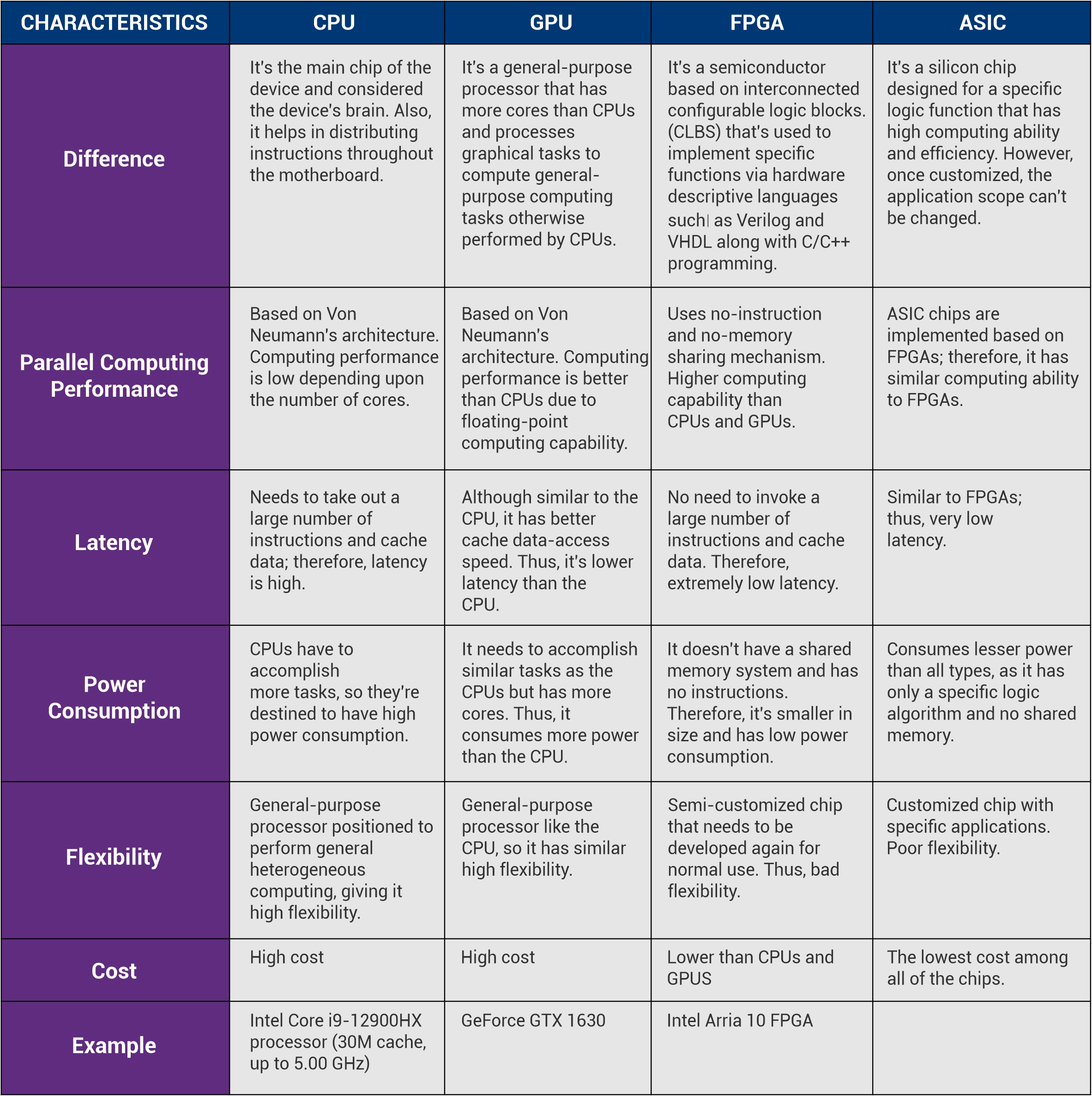 Table 1 : Comparisons Between CPU, GPU, FPGA AND ASIC