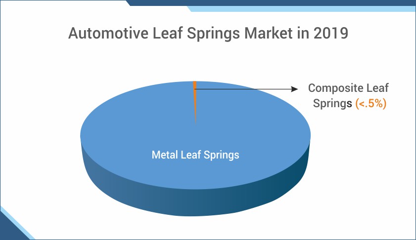Leaf springs are generally made up of either steel or composites. At present, composite leaf spring occupies a lilliputian share of <0.5 percent of the total leaf springs market, but its market is growing impressively to register a sales figure of over USD 90 million by 2024.