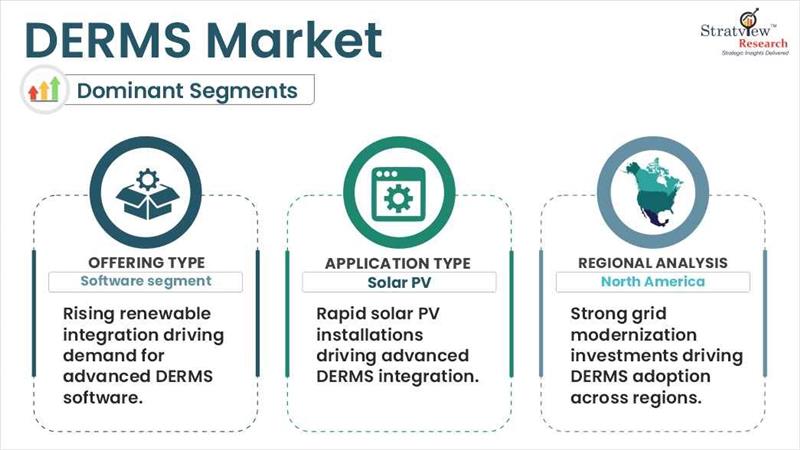 DERMS stands for Distributed Energy Resource Management Systems, an advanced software for managing distributed energy resources (DERs). These resources include solar panels, wind turbines, battery storage systems, and electric vehicles. The Development of new applications like integration with solar PV, wind power, and other renewable energy resources is necessitating the demand for efficient DERMS solutions. The global DERMS market is growing with the rising focus on grid modernization and energy decentralization, along with the increasing adoption of renewable energy supported by government policies and increasing awareness of renewable energy storage systems.