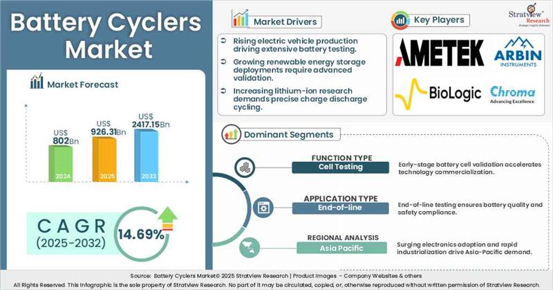 - This strategic assessment report from Stratview Research provides a comprehensive analysis that reflects today’s battery cyclers market realities and future market possibilities for the forecast period.