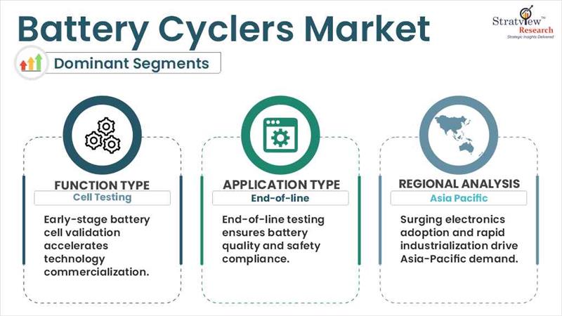 - End-of-line segment is projected to grow with the highest CAGR during the forecast period. The End-of-Line uses of battery cyclers are an inherent part of the battery production process to guarantee battery quality, reliability, and safety before consumer consumption. Being the last step of testing in the process of battery manufacturing, End-of-Line (EOL) testing using battery cyclers includes several important facets.