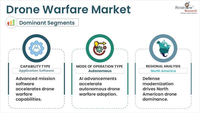 Drone warfare involves employing unmanned aerial vehicles (UAVs), more popularly referred to as drones, in military operations. The drones can either be operated remotely or autonomously and are utilized for various purposes such as surveillance, reconnaissance, target acquisition, and direct attack on enemy targets. The growth of the drone warfare market is driven primarily by the surging defense budgets, wherein countries are investing heavily in cutting-edge defense technologies, recognizing the strategic value of drones in modern warfare.