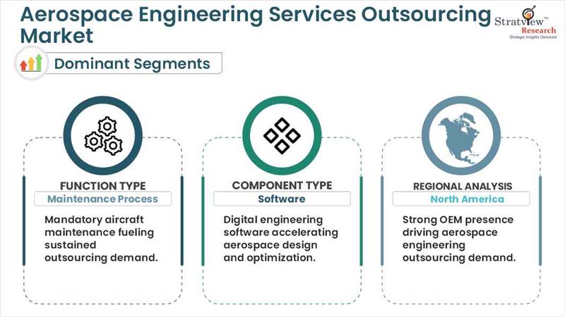- The aerospace engineering services outsourcing market is segmented by function type into design, simulation & digital validation, production process, and maintenance process.
