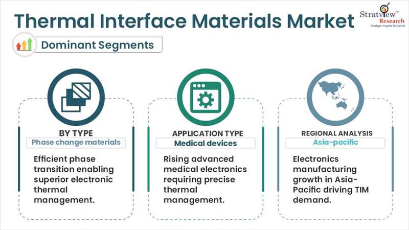 The market is segmented as greases & adhesives, tapes & films, gap fillers, metal-based thermal interface materials, phase change materials, and others. The phase change materials segment is estimated to be the fastest-growing segment in the coming five years.
