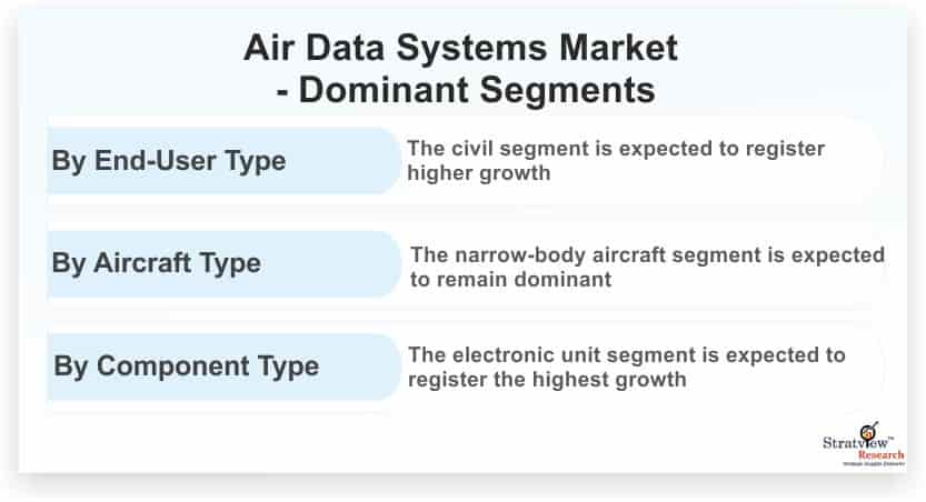 Air Data Systems are used in diverse types of aircraft such as narrow-body aircraft, wide-body aircraft, very large aircraft, fighter aircraft, regional transport aircraft, military transport aircraft, general aviation, rotary-wing aircraft, and others. Civil and military, both the segments make use of the air data systems.