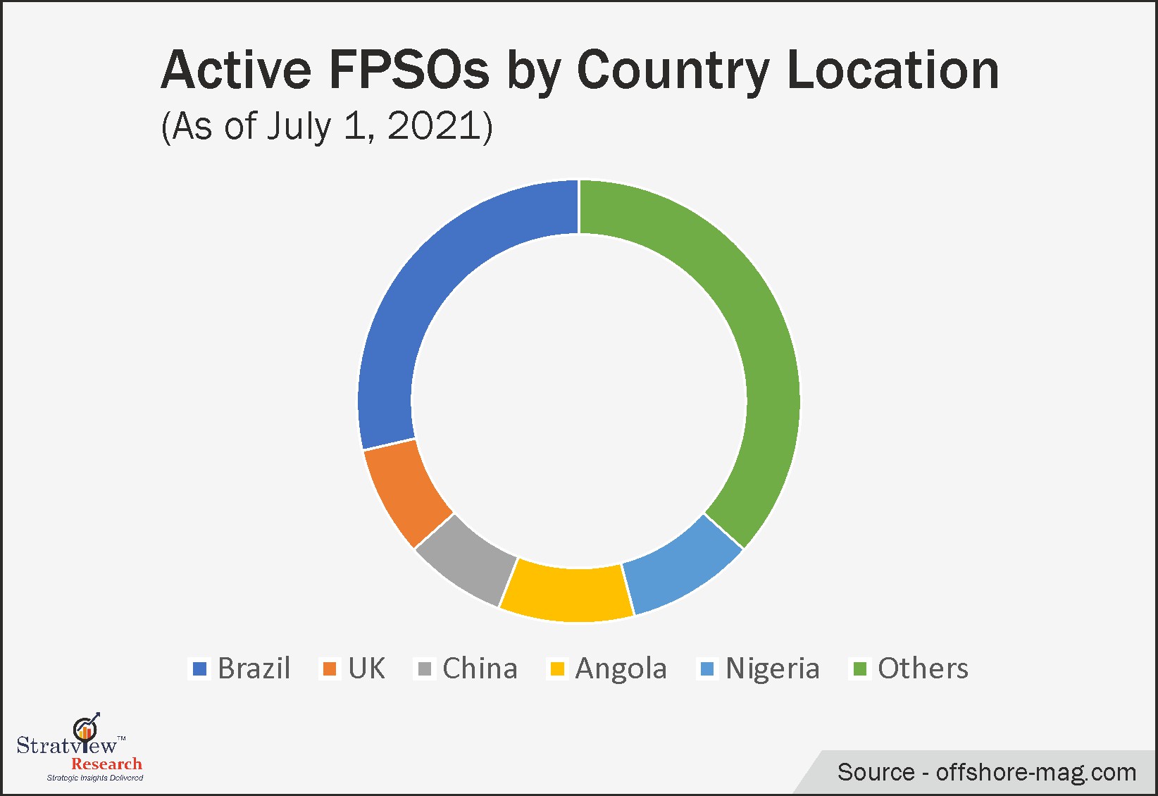 Offshore FPSO vessels have become increasingly popular over time owing to their improved technology allowing for easier access to deep-water oil reserves. In the year 2021, there were >45 operational FPSOs in Brazil, 13 in the UK, followed by China having 12 active FPSOs. Figure 2 depicts the active number of FPSOs by country location.