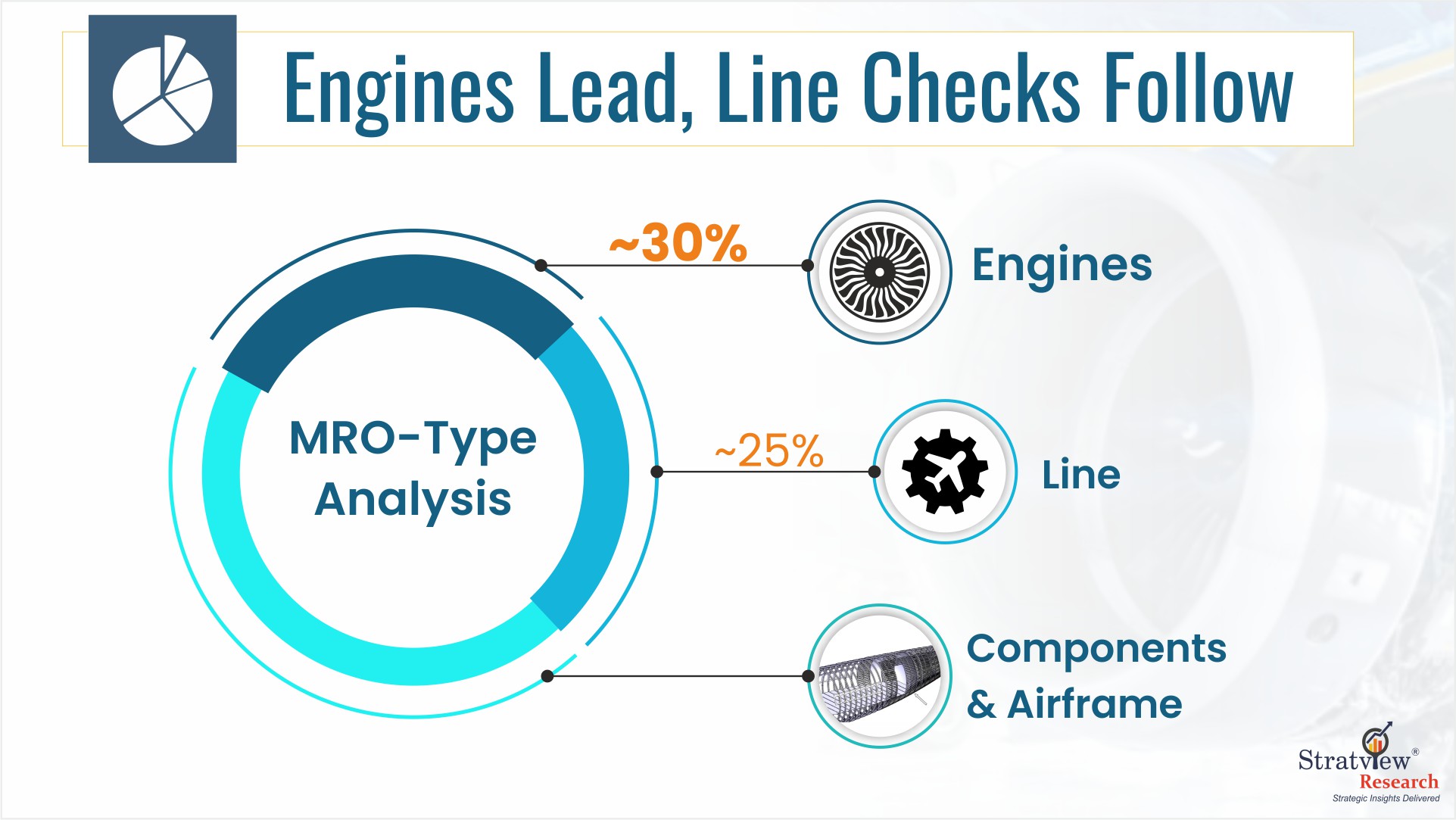 Fig 1. Aircraft MRO Market Breakdown: Engines Lead, Line Maintenance Follows