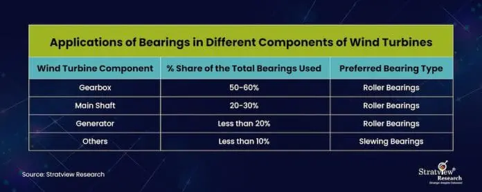 Fig. 1: Showing Applications of Bearings in Different Components of Wind Turbines