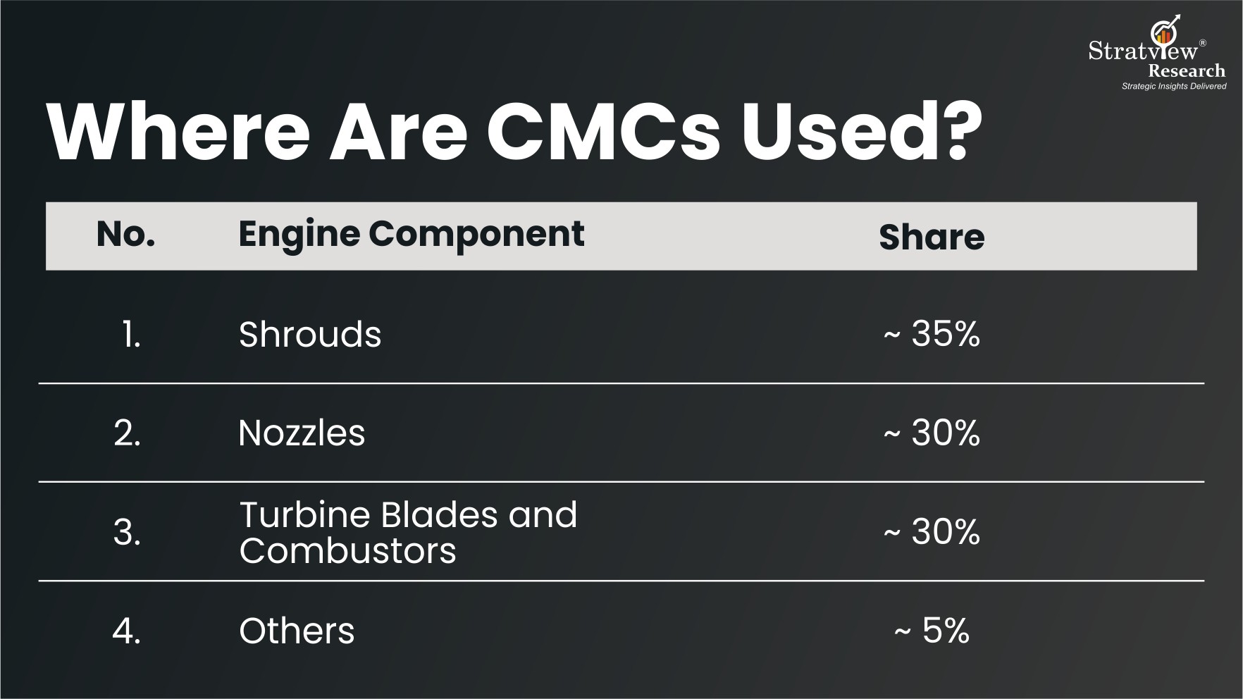 Fig 1. Ceramic Matrix Composite (CMC) Applications in Engine Components – Share Distribution