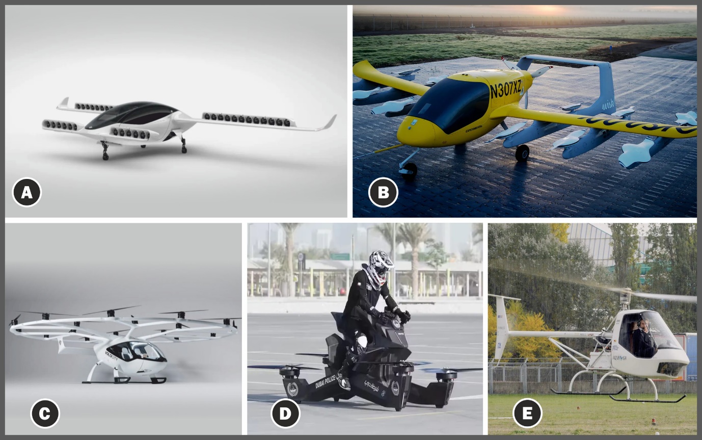 Fig 1 : Configurations of eVTOLs (Image source: [a] [b] [c] [d] [e])