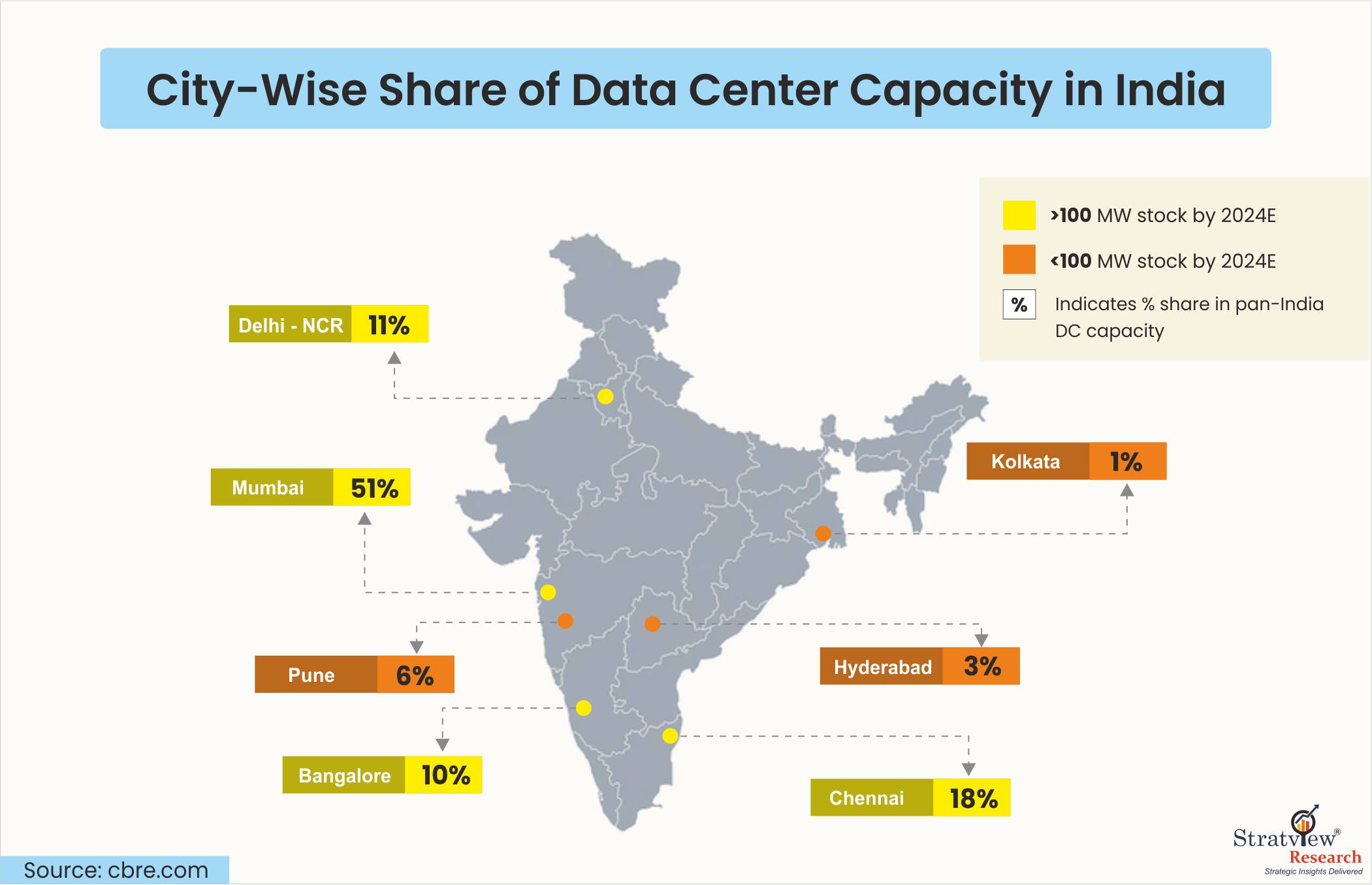Fig. 1: Data Center Capacity Share by City in India