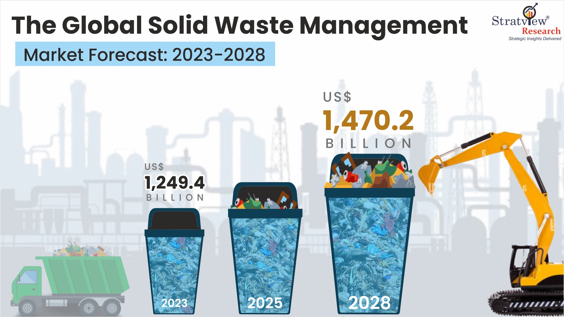 The statistics presented above are some of the reasons driving the increased demand for solid waste management across the globe. The global solid waste management market that valued at about USD 1249 billion in 2022 is likely to grow at a CAGR of >2.6% to register a sales figure of over USD 1470 billion by 2028.