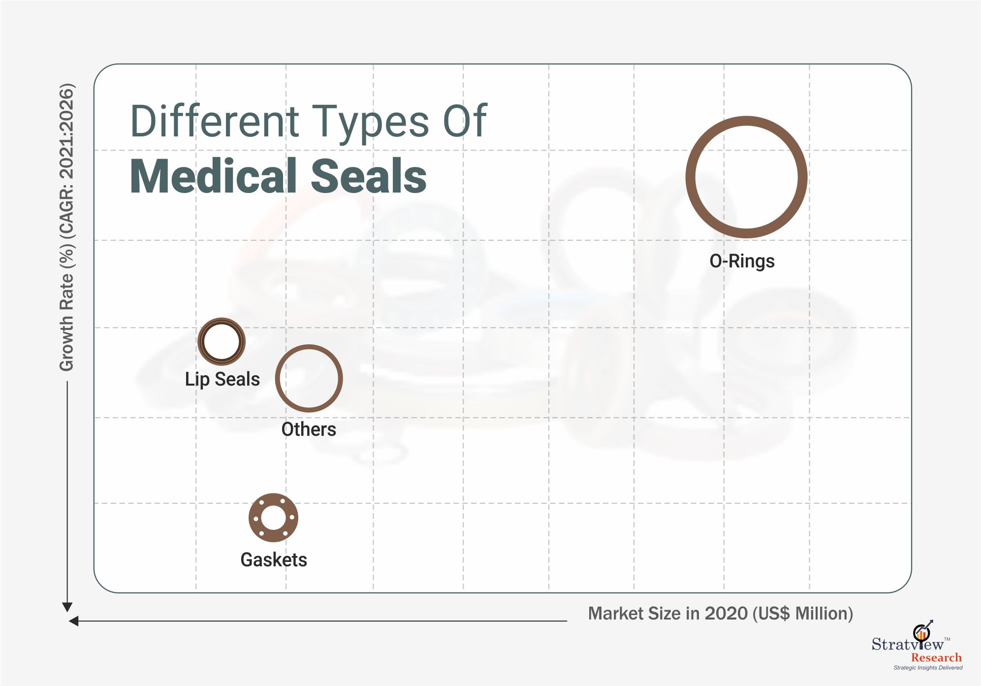 Gaskets are generally used in static applications, Lip seals in dynamic rotating elements, and O-ring seals are used in both static and dynamic applications. As a result, O-ring seals are high in demand and capture >50% share in the total medical seals’ market.