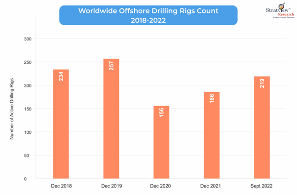 The data presented above shows us that offshore rigs has seen a continuous growth barring the year 2020, where its growth dropped suddenly. It was due to the onset of COVID-19 and its adverse effects on Oil & Gas industry. However, as the infections were brought under control and a semblance of normalcy was established all over, the growth in the number of rigs again started witnessing an uptick from 2021. According to Stratview Research, Inc., offshore drilling rigs are expected to grow at a CAGR of 9.1% till 2015.