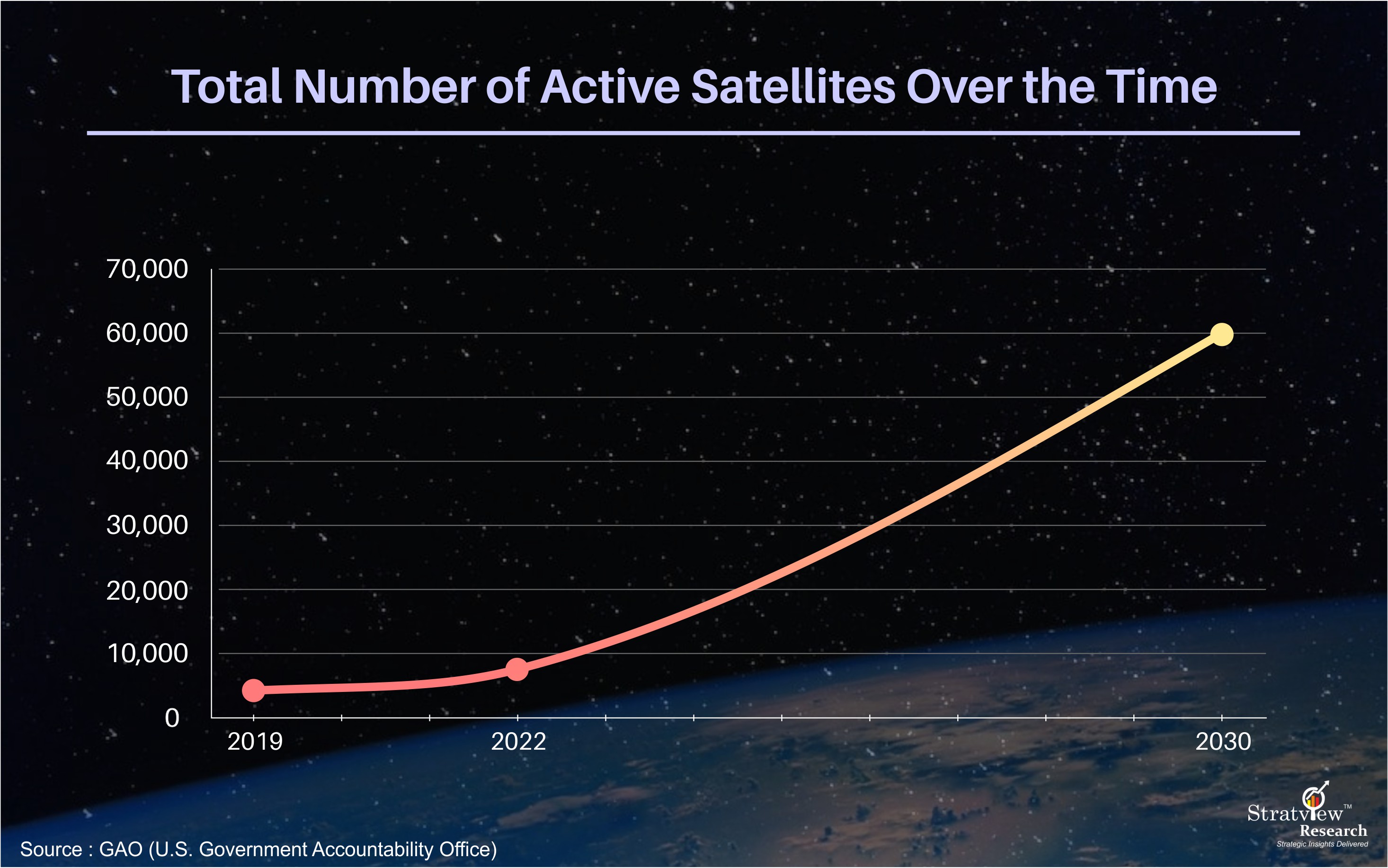 Due to many such requirements, the number of missions to space is rapidly increasing. In fact, in the year 2022, there were ~6,905 active satellites orbiting the Earth, with additional 58,000 satellites more to be launched by 2030. Figure .1. illustrates the timeline of a total number of active satellites from 2019 to 2030.