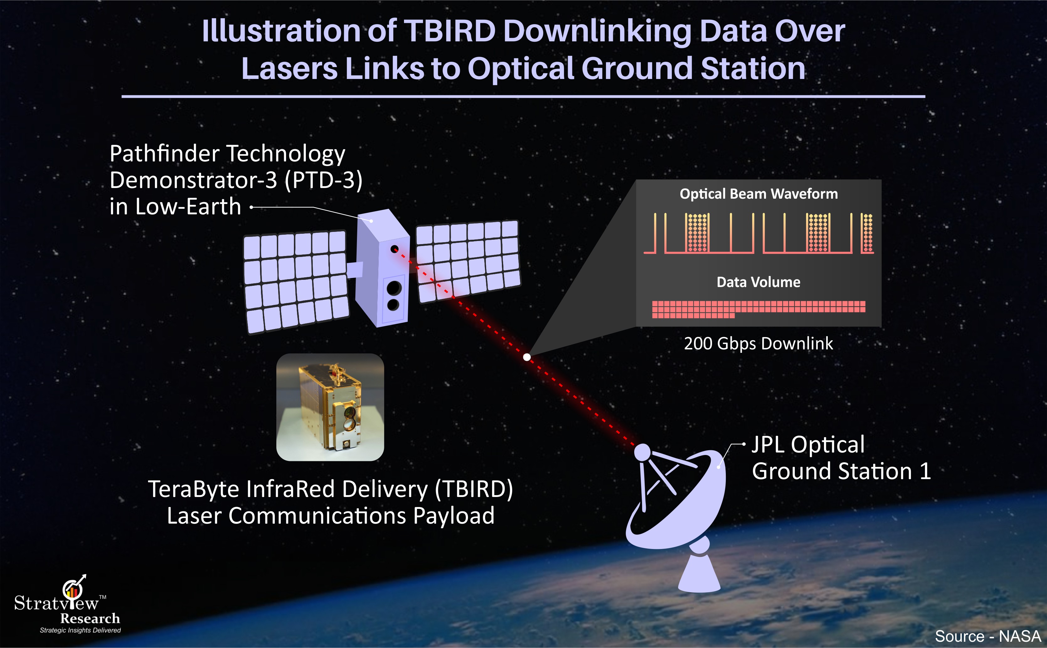 Fig.2. Demonstration of TBIRDDownlinking Data Over Lasers Links to Optical Ground Station. (Source – NASA.)